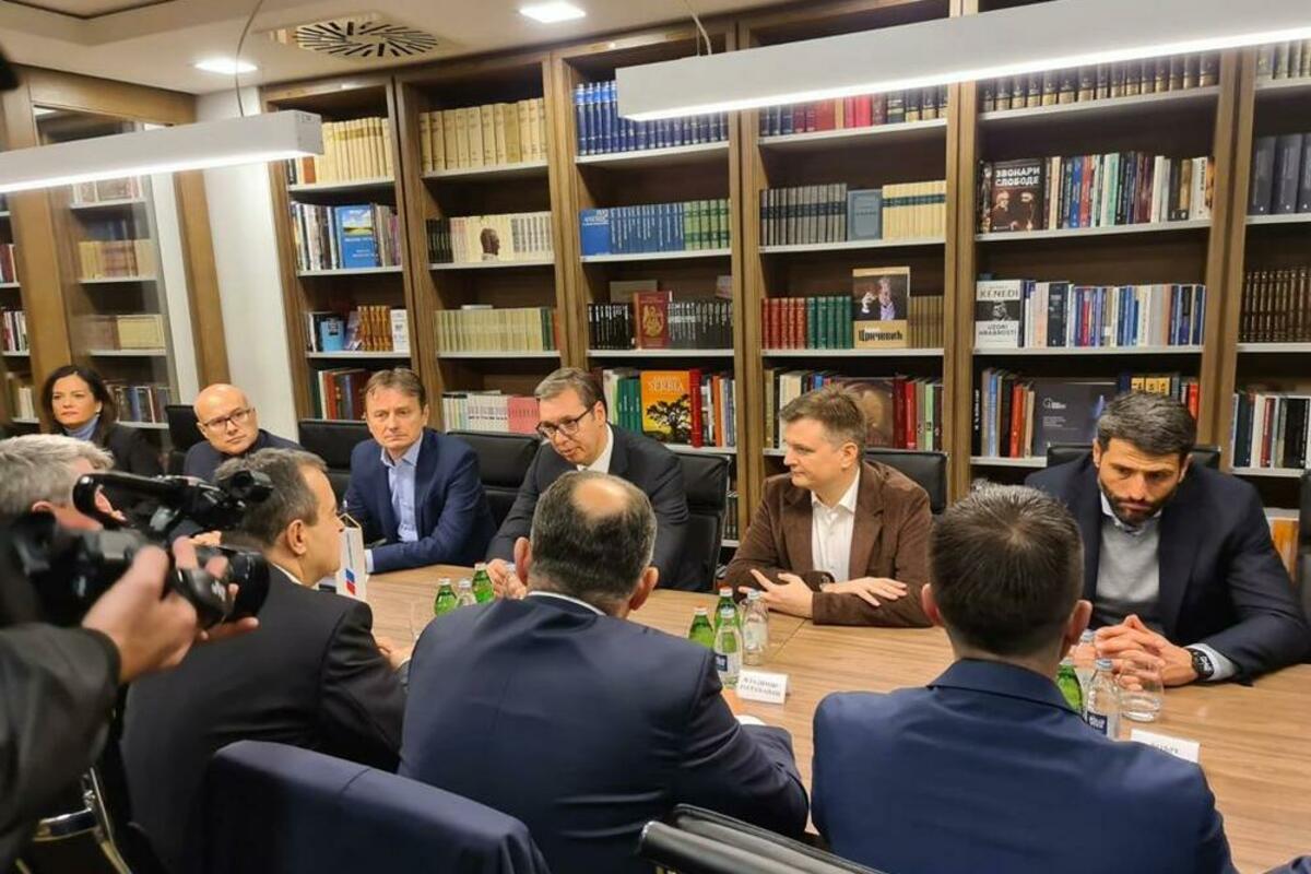 Sastanak se održava u sedištu naprednjaka na Novom Beogradu, a sastanku, pored lidera SNS i SPS, prisustvuju potpredsednik SNS Miloš Vučević, predsednik Izvršnog odbora SNS Darko Glišić, potpredsednik Glavnog odbora SNS Aleksandar Šapić, predsednik GO SPS Aleksandar Antić.Nakon razgovora predviđene su izjave za medije.
