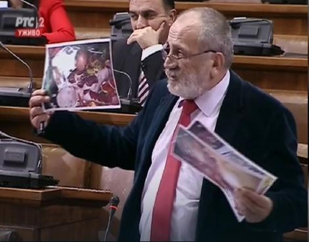 - Da li je nasilje nad ženama, kada stavite žene u frižider da ih rashladite i da služe kao ajnceri za hranu? Evo fotografije - rekao je poslanik SNS.