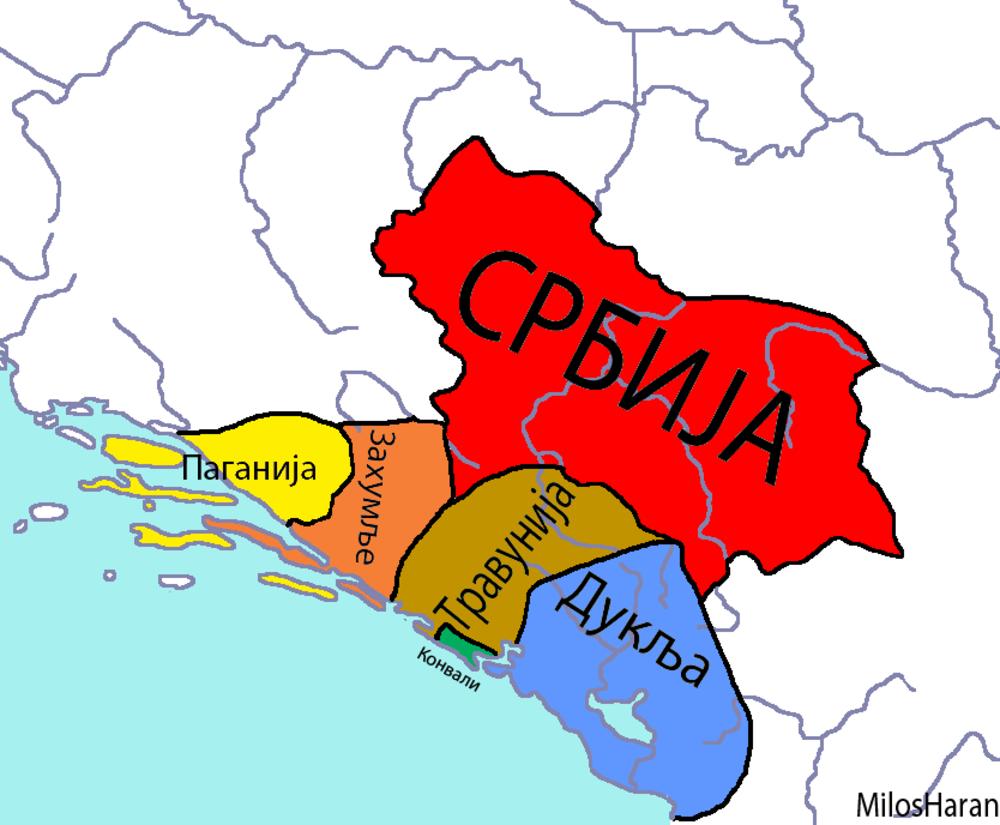 Granice Srbije, u kojoj je vladao staroverni Svevlad, kaže se da je bila locirana u predelu između tokova Pive, Tare, Lima, Ibra, Zapadne Morave i Drine, a njen geopolitički centar bio je između Pive, Tare i Lima. Međutim, država je u početku obuhvatala i teritoriju između južnog toka reke Bosne i reke Drine.