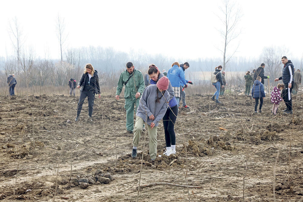 Neverovatno je kako u devet ujutru radnog dana ume da bude živo na ulazu u bačku varošicu - Bačku Palanku, tačno negde kod Čelareva. Zapitali bi se neki otkud mestašcetu od oko 5.500 duša ovoliko ornih za sadnju nove šume, i to u petak ujutru, kad kiša samo što nije.