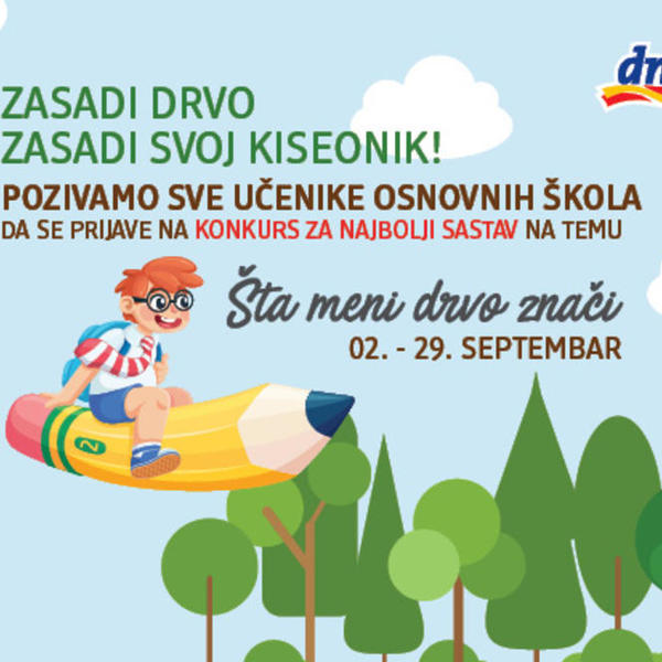 U okviru projekta „Zasadi drvo“, koji su pokrenuli „Adria Media Group“ i „dm drogerie markt“, organizuje se konkurs za sve učenike osnovnih škola u Srbiji, koji traje od 2. do 29. septembra 2019.