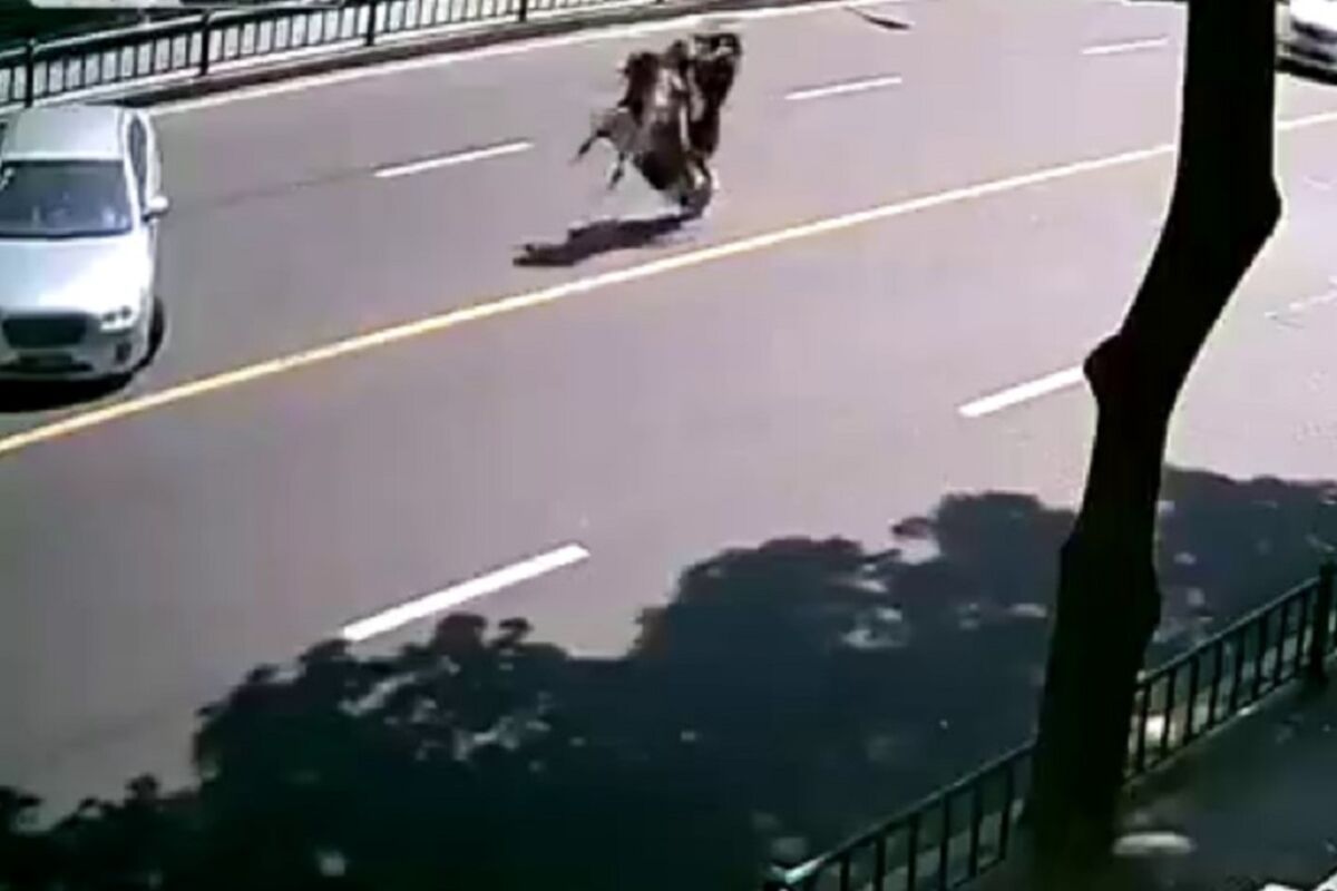 Jedan Kinez uspeo je da u tridesetak sekundi napravi totalni karambol na ulici. Dobro, nije on jedini krivac jer je sve počelo uletanjem automobila u njegovu traku, posle čega je tako naglo zakočio da su žena, dete i on poleteli sa motora licem ka asfaltu. Ni tu nije bio kraj. Taman kad je hteo da vrati porodicu na skuter, desio se novi kurcšlus.