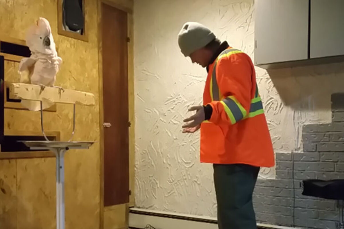 Presmešna reakcija ptice, nezadovoljne načinom na koji mu gazda popravlja kavez