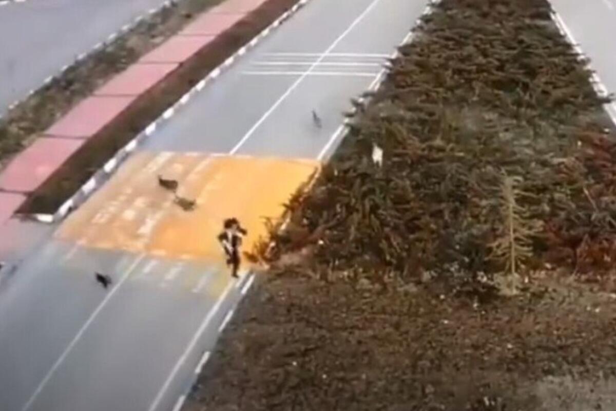 Snimak je objavljen u subotu i na njemu se vidi kako do uplašene devojke prvo dotrčava jedan pas dok je stajala na stanici. Ubrzo mu se pridružuje i ostatak, pa njih sedam pokušava da opkoli nesrećnu studentkinju.