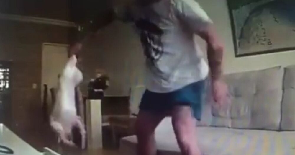 Bez razloga je udarao psa. Kao što možete videti u videu, ovaj monstrum ga iznenada uzima za vrat i davi, te baca na pod, iako pas prethodno mirno sedi ispod stolice.