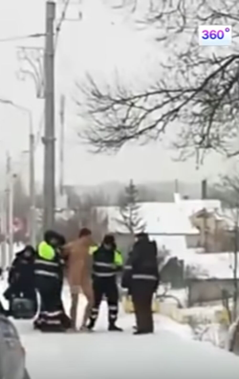 Na minusu i po snegu on se uz to go i bos žestoko opirao hapšenju pa su policajci morali da primene silu. Jedva su uspeli da ga uguraju u policijski auto.