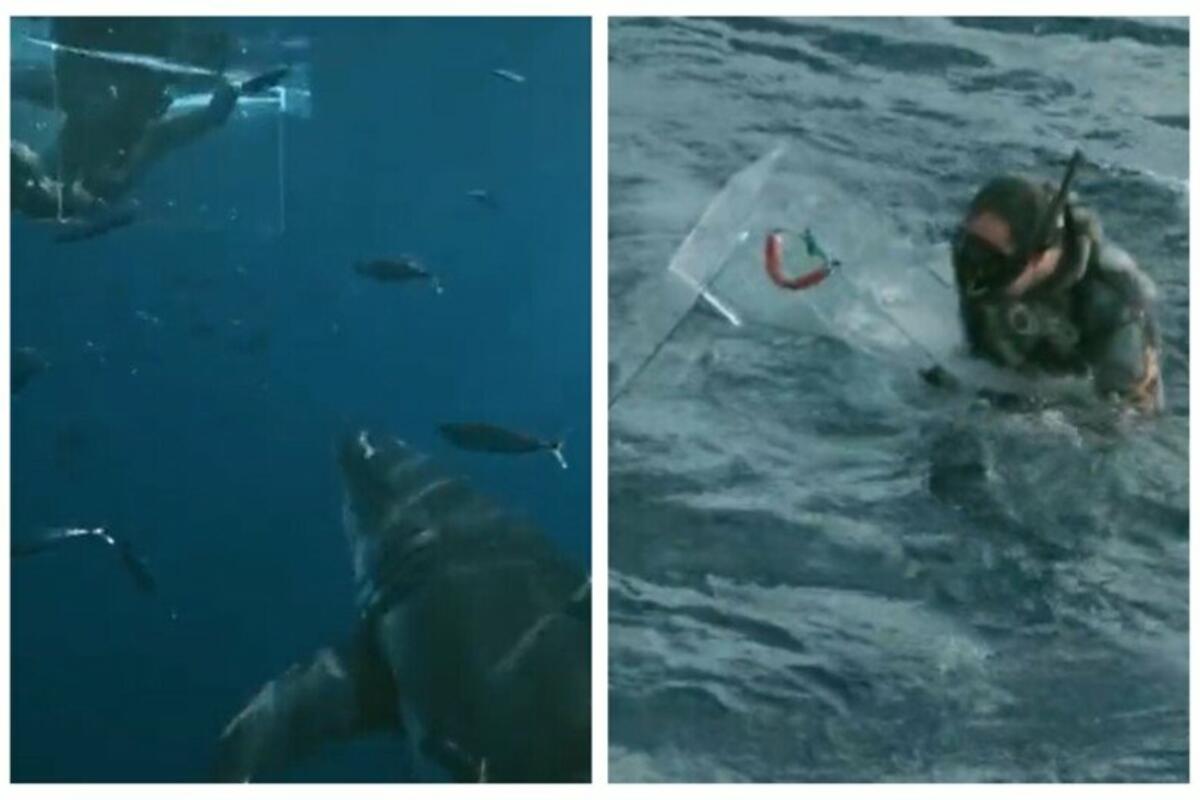 On se nalazio na otvorenom moru, uronjen u malu kutiju od polikarbonata, odakle je pratio kretanje velike bele ajkule. Životinja je, barem u prvim trenucima, bila dosta fokusiranija na manje ribe koje su se nalazile u blizini kaveza. Ali onda je počela da kruži oko Džima.