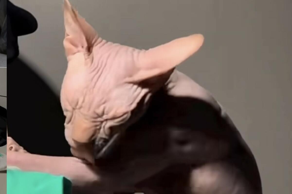 Naime, jedna mačka bez dlaka snimljena je od strane svog vlasnika kako se liže.