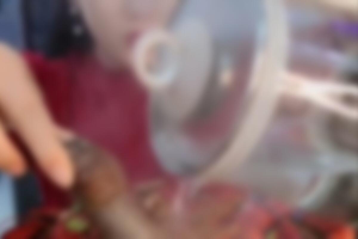 Školjka je počela da "ejakulira" ili izbacuje vodu, verujemo da je to bio neki trik pre nego što ju je živu ispolivala vrelom vodom i oljuštila kožicu sa nje.