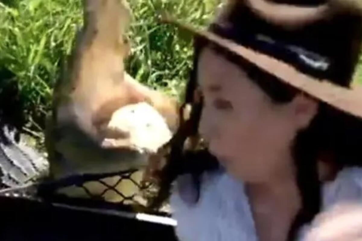 Kamera je snimila zastrašujući trenutak kad je ogromni krokodil skočio prema novinarki koja je pozirala sa njim.