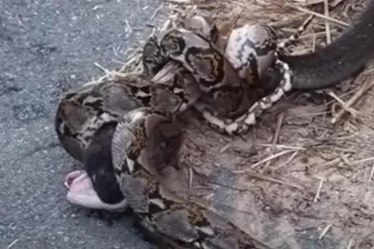 Video je snimljen u okrugu Nakhon Si Thammara, a pokazuje da se piton omotao oko crne kraljevske kobre, dok je ona zarila otrovne zube u njegov vrat i tako ga polako ubila.