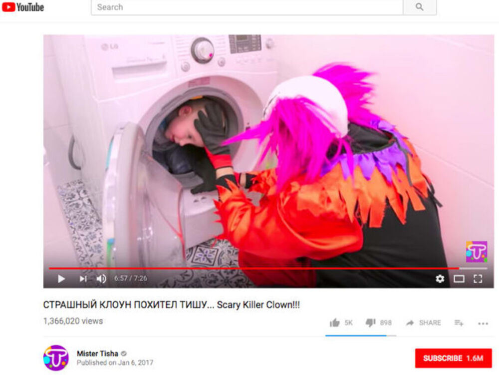 Snimak u kome čovek maskiran u klovna gura dečaka u mašinu za veš takođe je bio svojevremeno viralan. Sam kanal sa koga je potekao vodi porodica, a glavni glumci su deca.