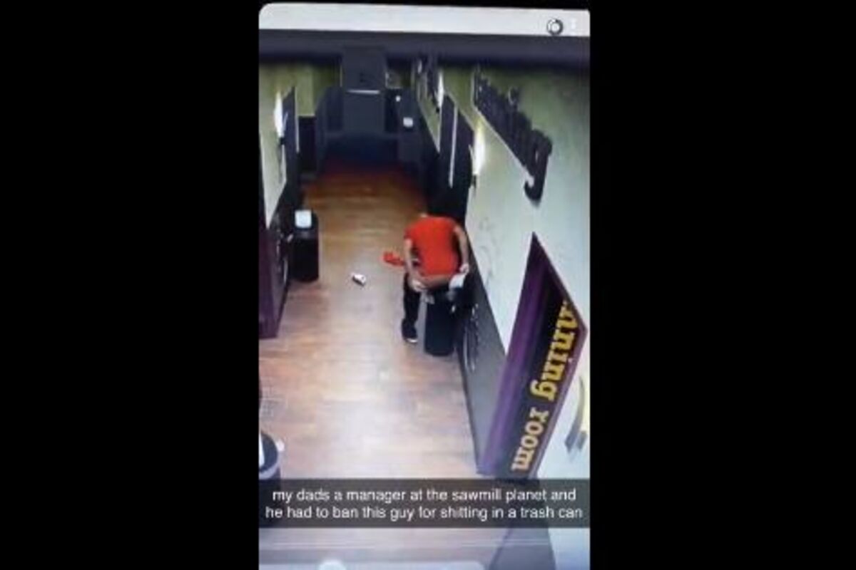 Na snimku se vidi kako muškarac trči ka kanti za smeće, skida gaće i vrši nuždu.