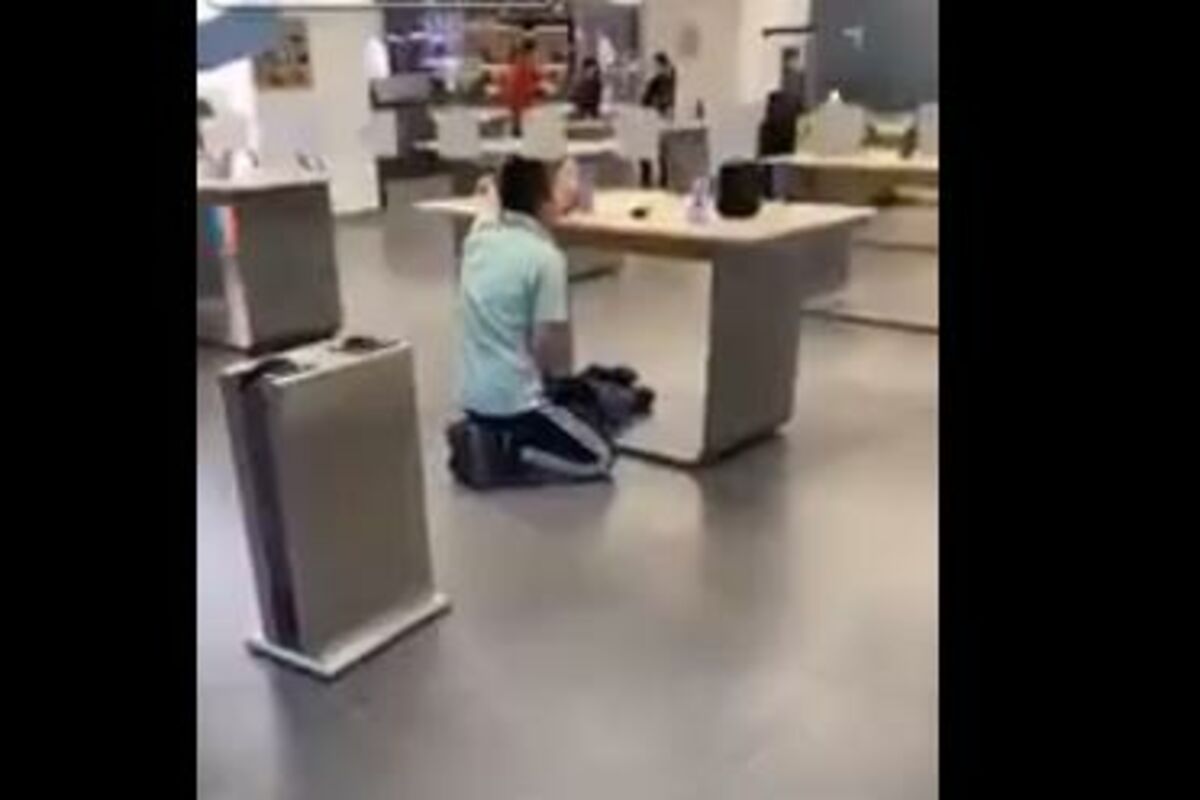 Ipak, muškarac koji je snimljen u Epl radnji prešao je sve moguće granice. Njega je jedan slučajan prolaznik primetio kako na kolenima kleči usred prodavnice.