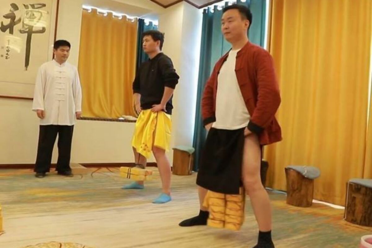 Jedna od brojnih škola kung fua u Kini, vratila se redovnom radu. Njeni učenici su odmah pošli da nastave započeto, međutim, prvi zadatak bio im je onaj kojeg su se bojali- da nose teg oslanjajući se na snagu svojih mošnica.
