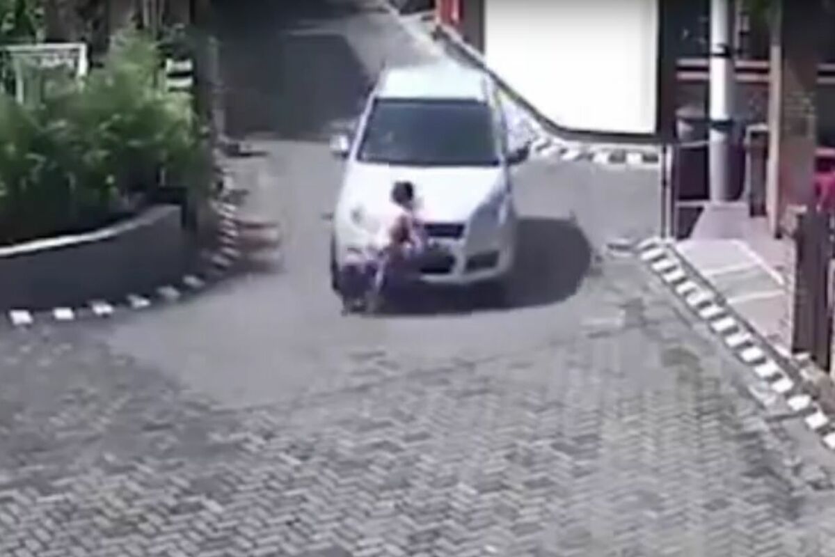 Sigurnosne kamere zabeležile su neverovatnu scenu u jednom gradiću u Indoneziji! Devojčicu na skuteru je udario automobil i prešao preko nje, ali se ona izvukla ispod automobila i nastavila da hoda!