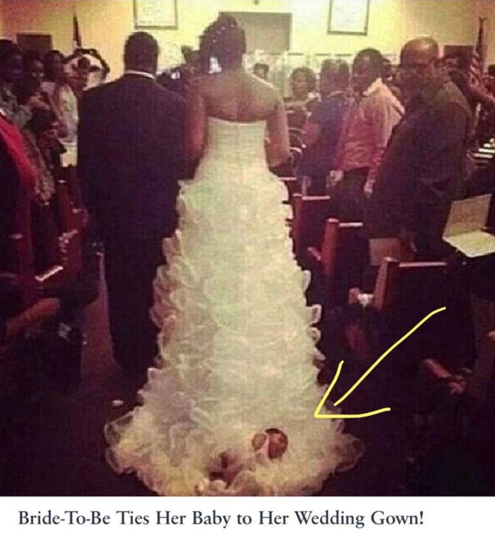 Na sajtu Reddit korisnik pod imenom whatever9 podelio je sliku žene koja je svoju ćerkicu vezala za dno svoje venčanice.