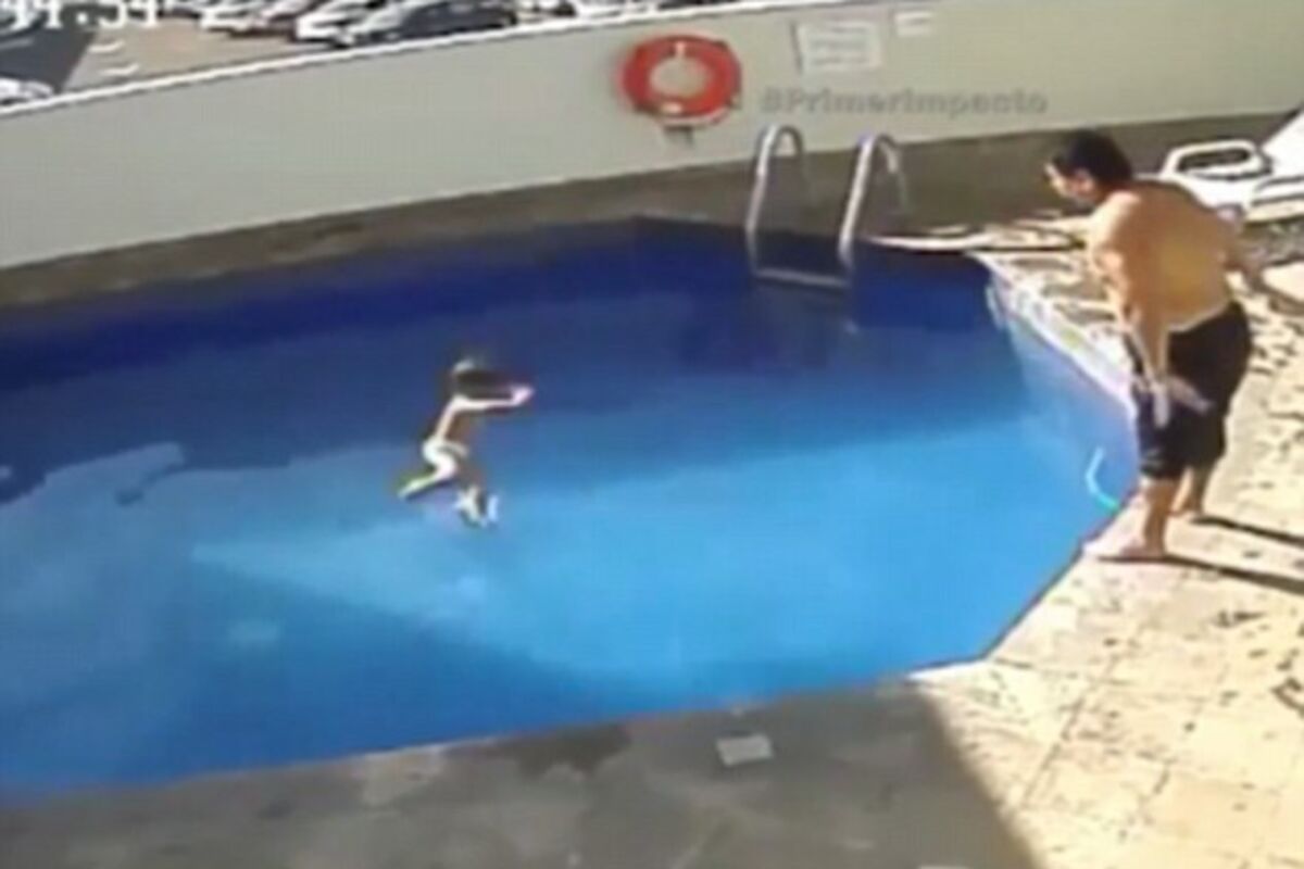 Na snimku se vidi da dete ne zna da pliva i da se bori da ostane na površini, javlja Daily Mail.