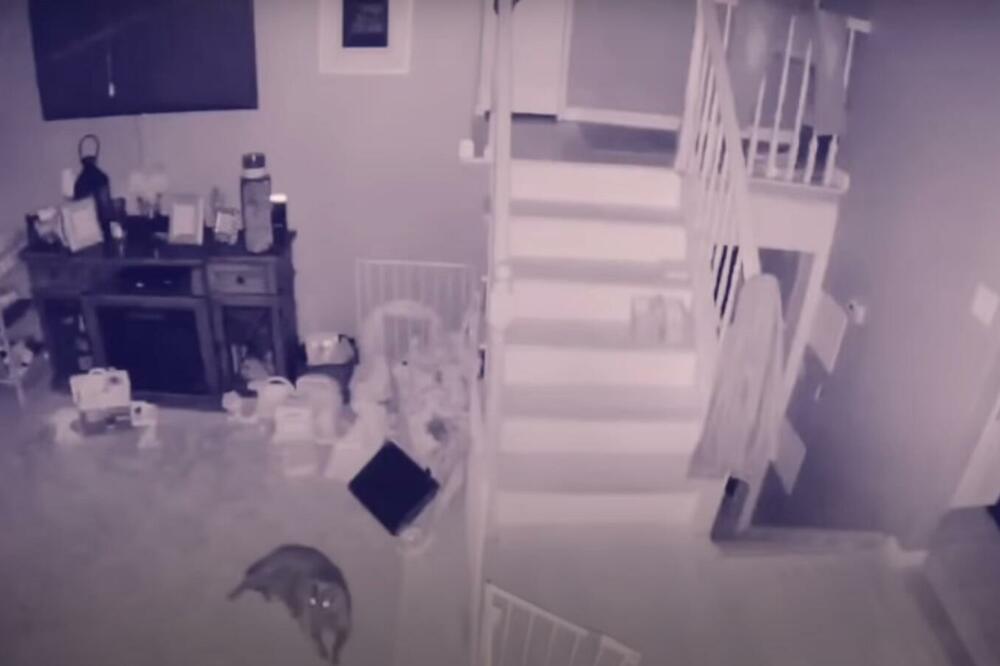 Isprva je sve izgledalo normalno. Mačka je sedela na sredini dnevne sobe, a onda se u desnom kutu pojavila senka koja ide ka stepenicama i vraća se.. Snimak je objavio Džoi Nolan iz Njujorka. Nije siguran šta je snimila njegova kamera.