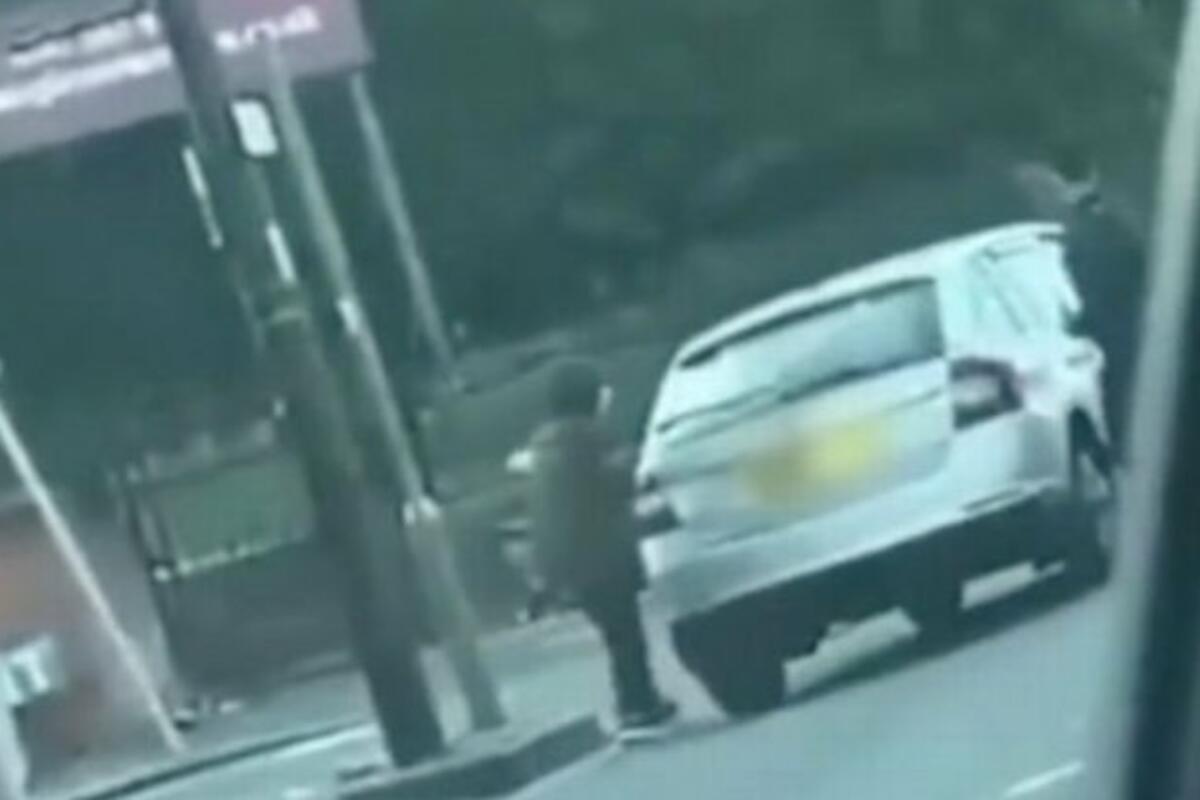 Neverovatna scena zabeležena je u nedelju nasred puta u Mančesteru. Iz automobila su iznenada izašla tri mladića od oko 22 godine starosti sa mačetama u ruci.