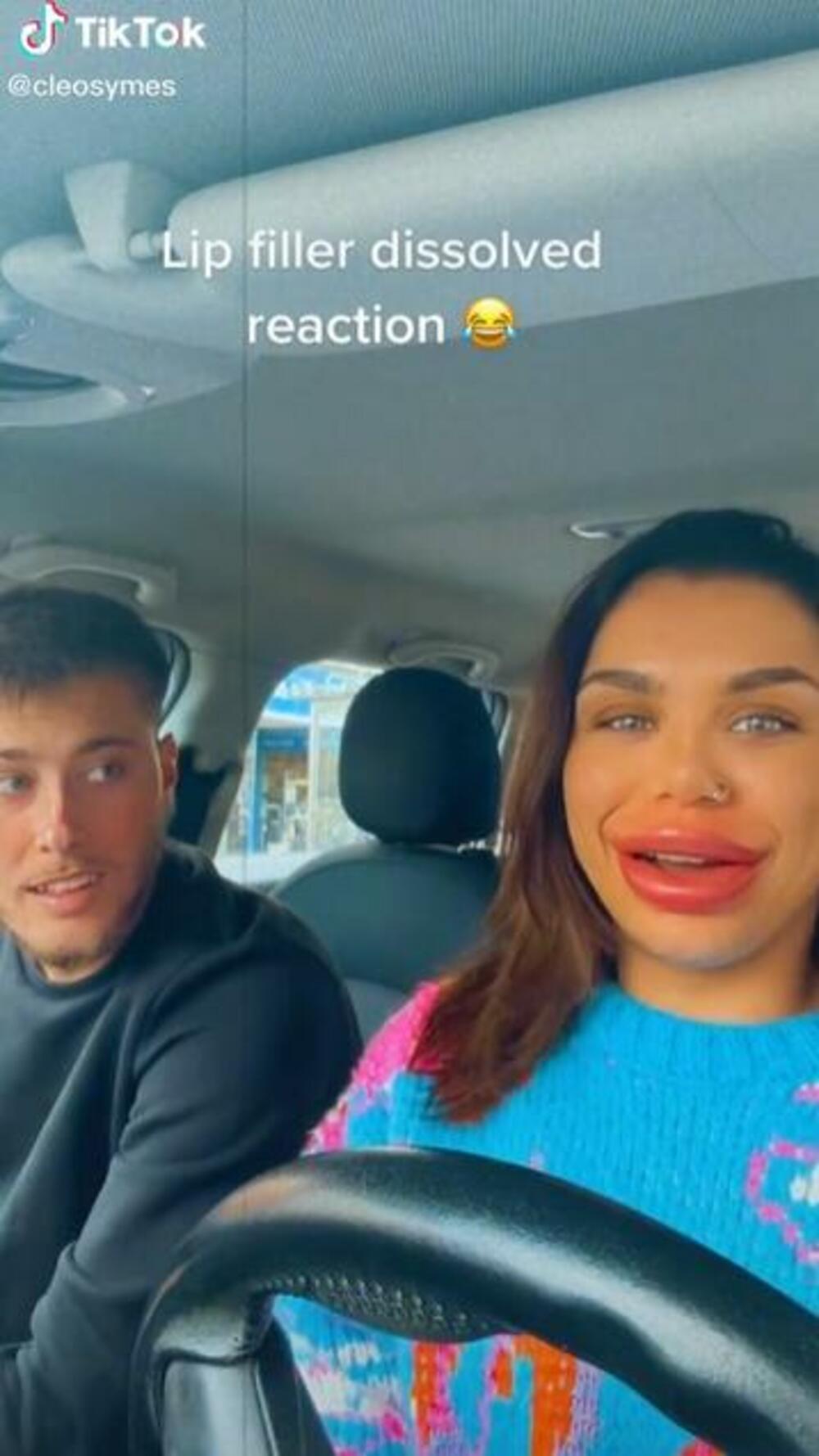 Kleo (25) iz Bornmuta u Dorsetu je podelila snimak sebe na TikTok-u gde je dečku pokazala svoje natekle usne na šta je on bio vidno šokiran.