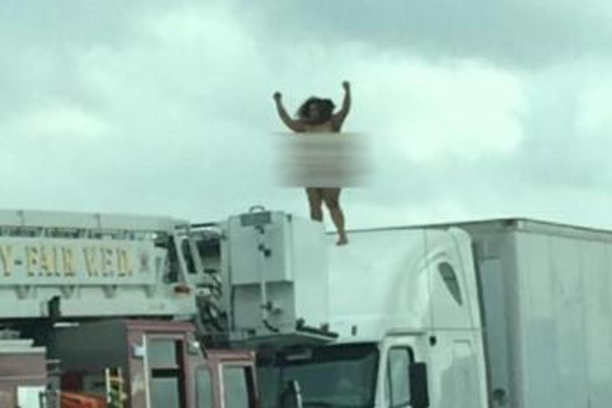 Žena "kao od majke rođena" snimljena je na autoputu u Hjustonu dok je izvodila mali performans na kamionu.