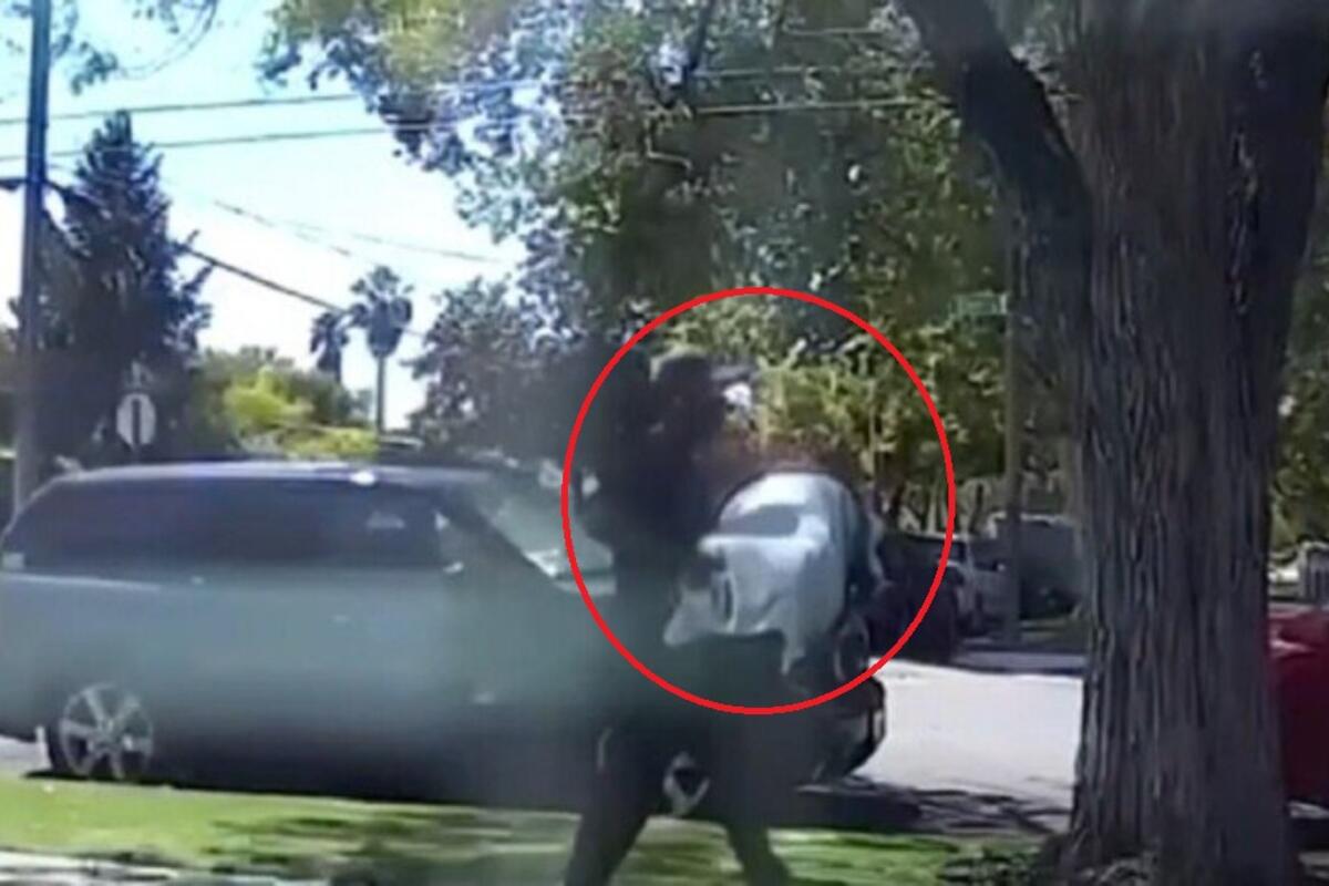 Stranac je potom izašao pravo iz kuće u ulici Elm noseći malo dete, koje je bilo obučeno u kombinezon sa dinosaurusima, saopštila je policija San Hozea.