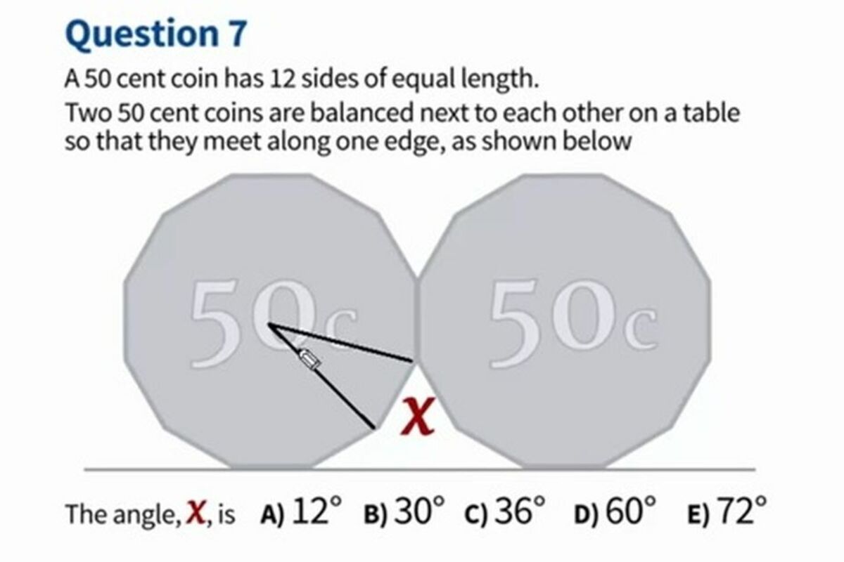Oni kojima je matematika jača strana uspeli su da reše zadatak, ali oni drugi (koji čine većinu) su postali očajni kad su ugledali jedan od zadataka na ispitima u Australiji. Propis jači i od matematike: Ono kad 5 puta 3 nije 15 (FOTO) Studenti više matematike su se zbunili kad su naleteli na matematički zadatak o dve kovanice od 50 centi. Zadatak je pokazivao dve kovanice, sa 12 strana jednake dužine, kako stoje na stolu jedna do druge, pri čemu su spojene jednom svojom stranom. Zadatak je bio da se odredi pod kojim uglom je X u sredini, a ponuđeni su im odgovori od 12 do 72 stepena. U čudu, mnogi su potražili pomoć na društvenim medijima. Drugi su pak na Tviteru krenuli da ismejavaju svoje kolege koji nisu znali tačan odgovor na ovo "jednostavno" pitanje. Profesor Grem Njuman zadatak je nazvao izazovnim, ali je dodao i da je - pošten. - Većina ispitnih pitanja zahteva od studenata da se samo rukovode dijagramima, ali to nisu dobili u ovom zadatku. Morali su sami da nacrtaju trouglove i da otkriju rešenje - rekao je profesor.