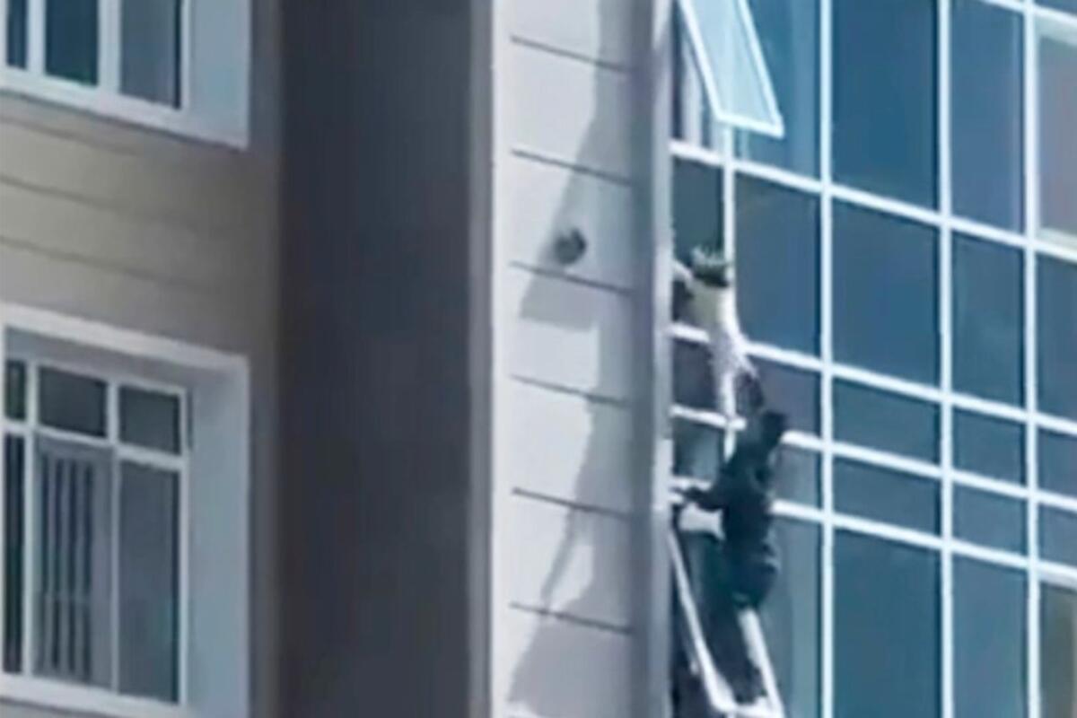 Sabit Šontakbaev (37) i prijatelj išli su na posao kada su primetili da se ovo dešava. Otac četvoro dece je uleteo u zgradu i pokucao na vrata stana ispod devojčice. Zatim je snimljen kako se penje kroz prozor.