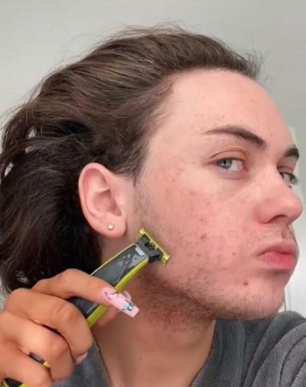 Naime, ovaj momak skoro svaki video započinje tako što se snima bez trunke šminke, često pokazuje i malje na licu, a onda sledi transformacija u ženu.