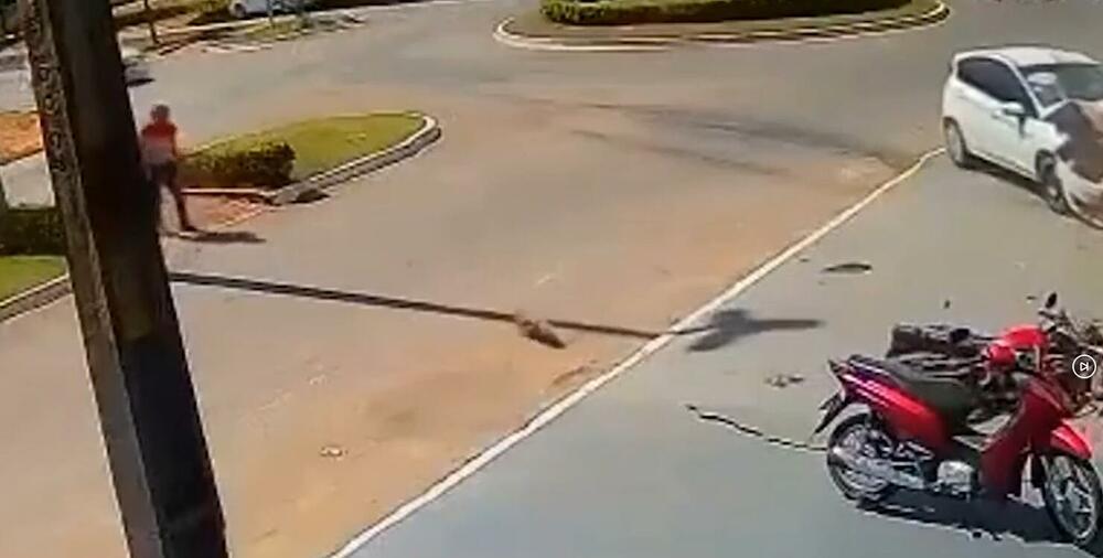 Auto kamere na nepoznatoj lokaciji zabeležile su težak sudar automobila i motocikliste.