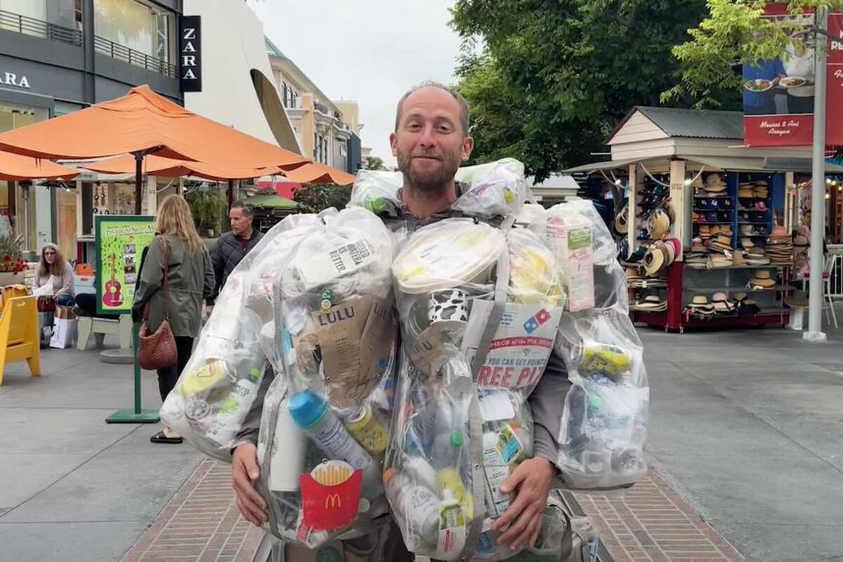 Grinfild hoda ulicama Los Anđelesa i sa sobom nosi oko 28 kilograma smeća nastalog od hrane i pića koje je konzumirao.