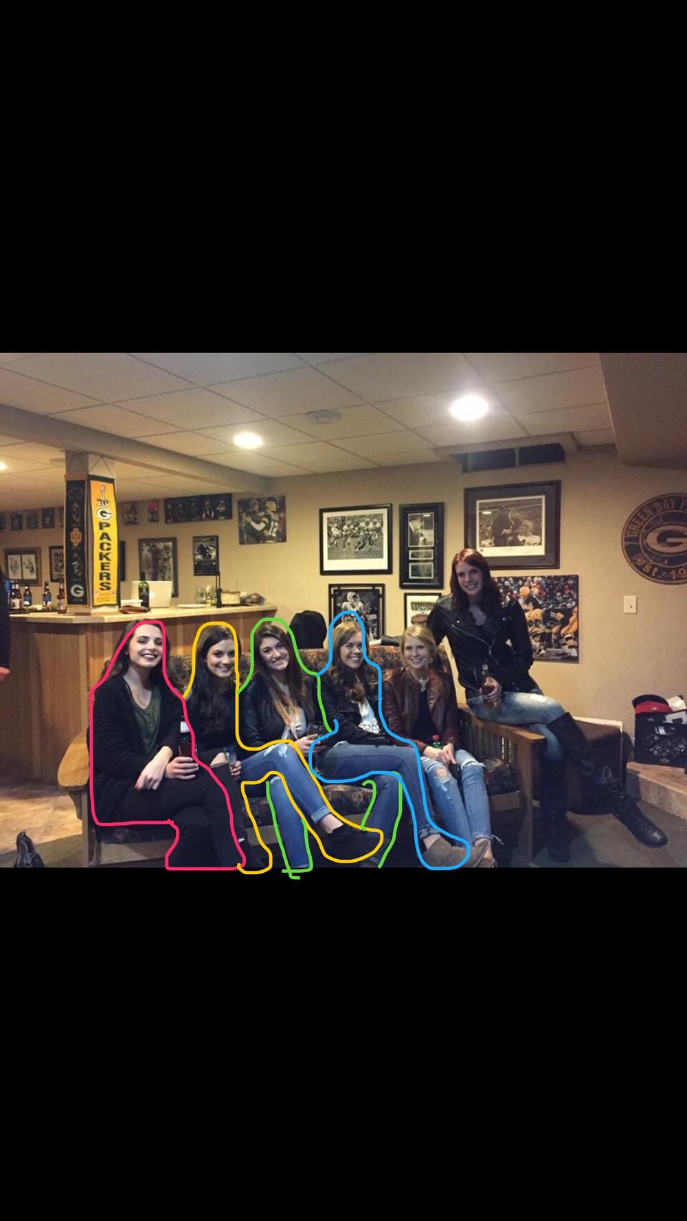 Dakle, devojka broj jedan je klasično prekrstila noge, dok je devojka broj dva prebacila nogu preko njene... Deluje kao da devojka broj tri drži noge ispred sebe, ali da li su zaista njene? Izgleda kao da su od devojke broj četiri.