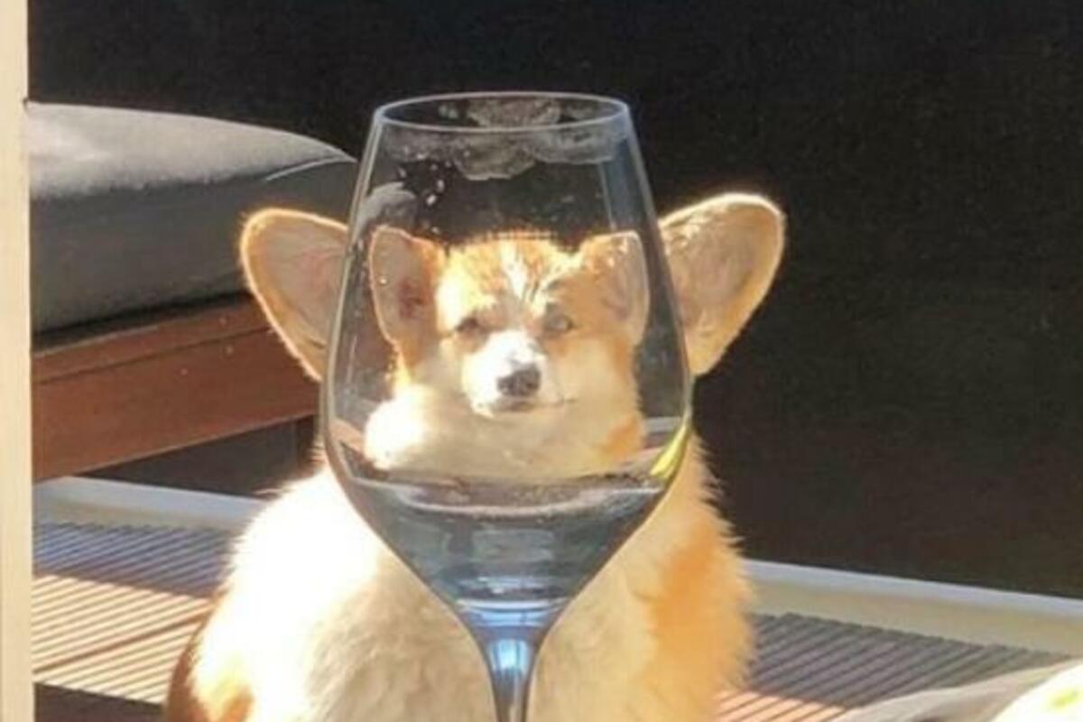 Slika psa koji se vidi kroz čašu za vino završila je na Tviteru i izazvala veliku pažnju kornisnika koji su se slatko nasmejali prizoru.