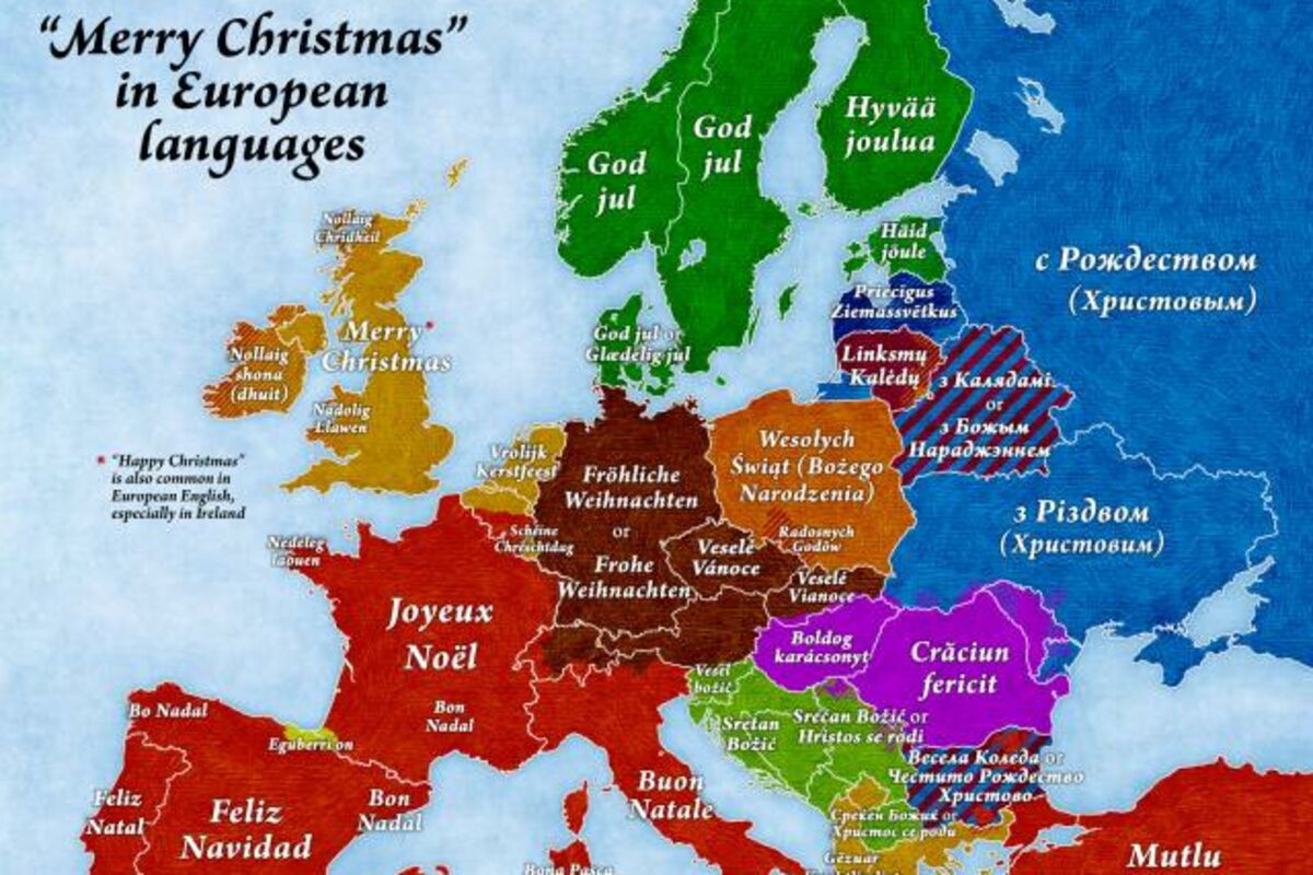 Za sve one koji danas proslavljaju ovaj praznik, ali i one koji ga žele čestitati prijateljima donosimo posebnu mapu koja prikazuje kako se u kojoj državi Evrope čestita Božić, a koju je napravio portal JakubMarian.