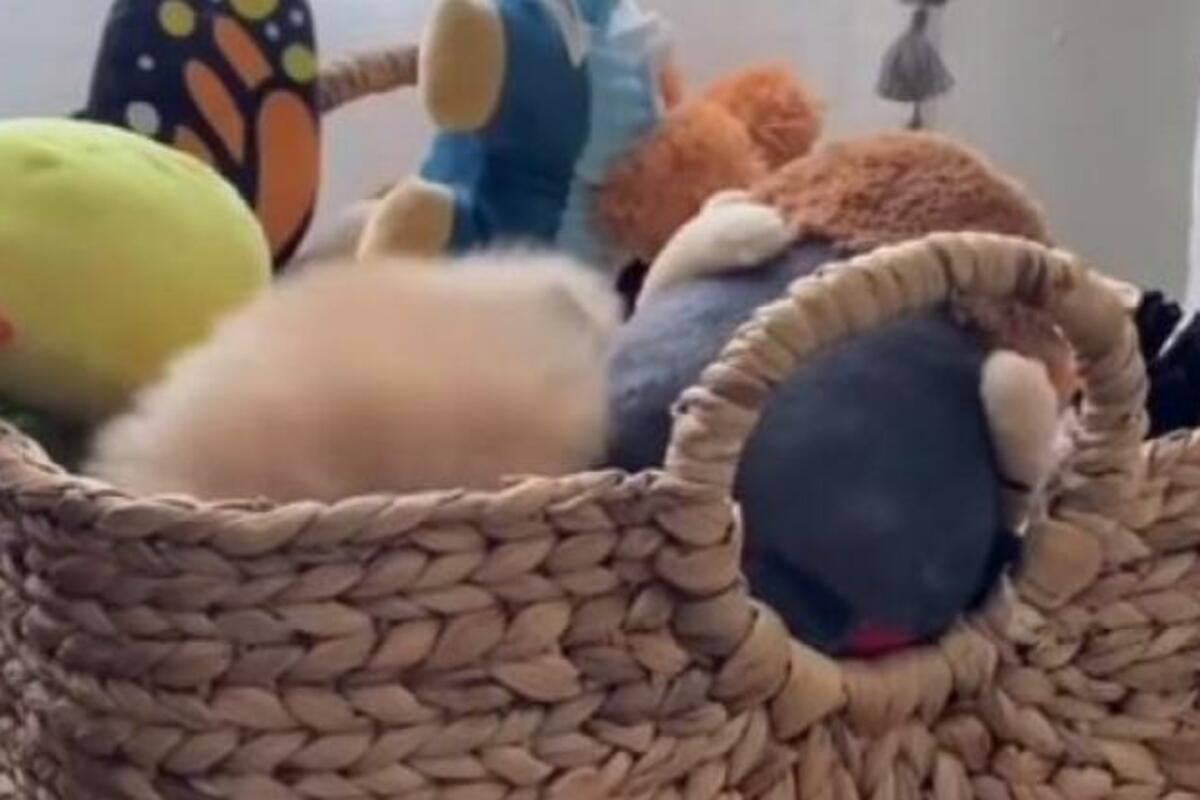 Zapravo on je ušao u korpu sa igračkama, a koliko je mekan i sladak, sigurni smo da biste i mogli da ga zamenite za plišanu igračkicu.