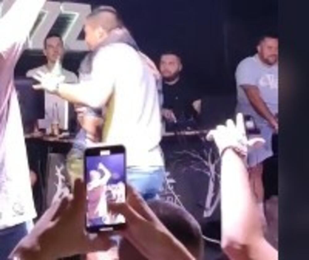 Usred nastupa repera Devita, na binu se popela ona sa svojim dečkom, pred kojim je kleknula. Onda mu je postavila sudbonosno pitanje.