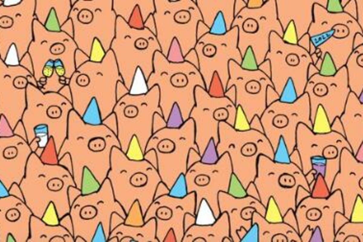 Ilustracija prikazuje svinje okupljene na zabavi kako dižu čaše u s pićem, piše Dejli Mejl. Većina njih nosi šarene papirne kapice za zabavu, a treba pronaći tri s golim glavama… Dosadašnji je rekord 17 sekundi.