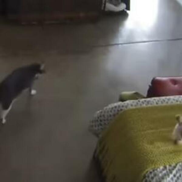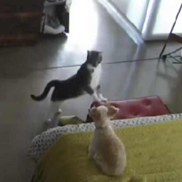 Poznato je da se mačka i pas često svađaju, a ovaj video ćete pogledati dva puta.