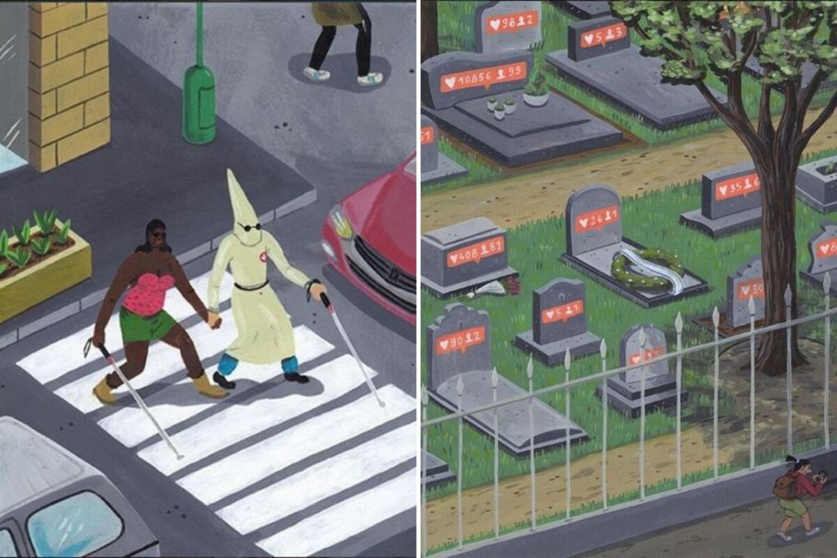 Bilo da je reč o ljudskim opsesijama tehnologijom i društvenim mrežama ili o potrebi ljudi da prate masu, ali i onom neizbežnom ciklusu nasilja, njegove ilustracije uspevaju da isprovociraju gotovo svakog.