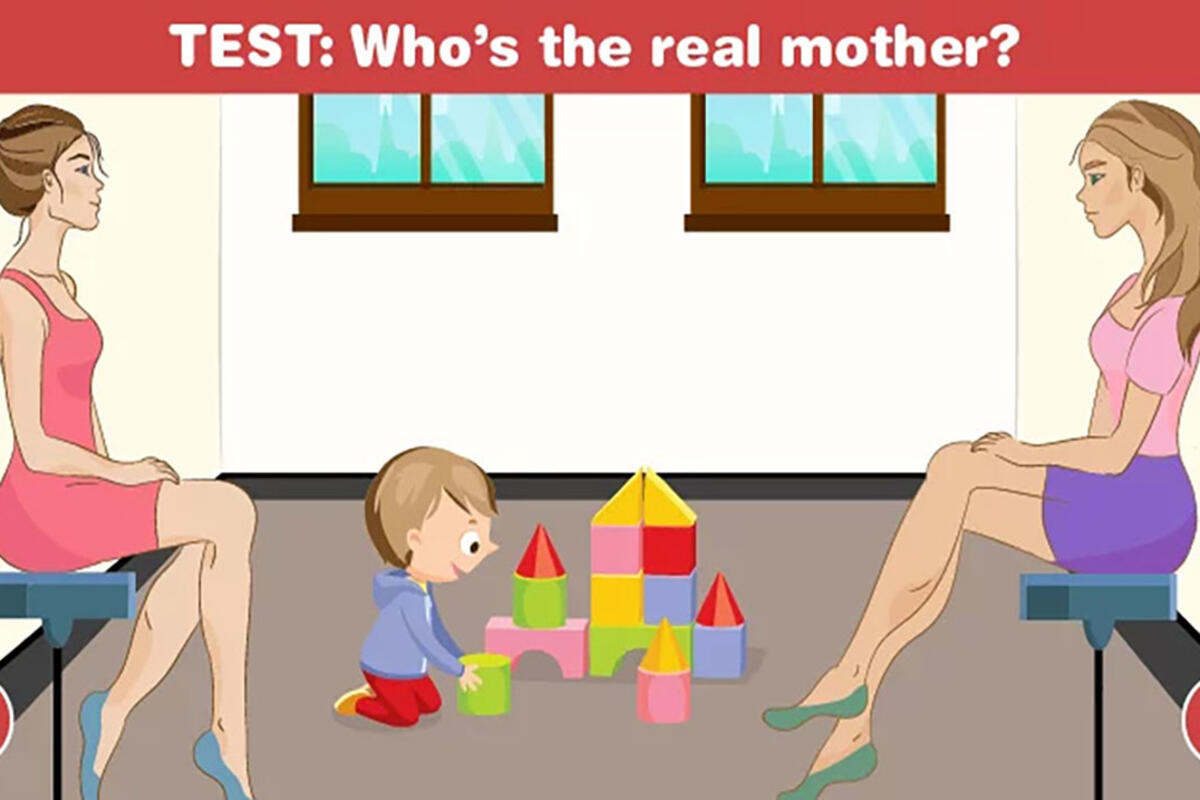 Pogledajte dobro ilustraciju ispod i probajte da zaključite ko je prava majka deteta koje se igra, od dve žene koje sede jedna nasuprot druge.