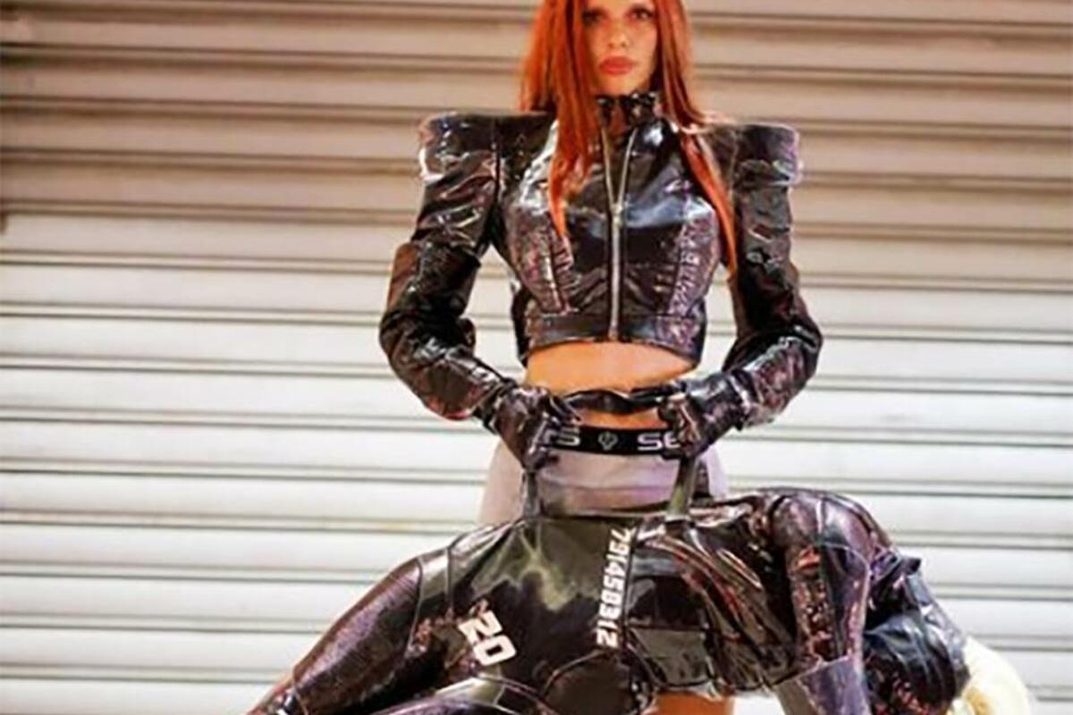 Ova torba ima i periku, dugačku plavu kosu i takođe nosi kožu, deluje gotovo poput kopije osobe koja je nosi, a za kombinaciju se pobrinula njena dugogodišnja stilistkinja Brijana Andalore, koja je zaslužna za sve njene neobične autfite. Stil se zasniva na fetiš modi, lateksu, koži, neobičnim materijalima i teksturama, kao i bizarnim detaljima.