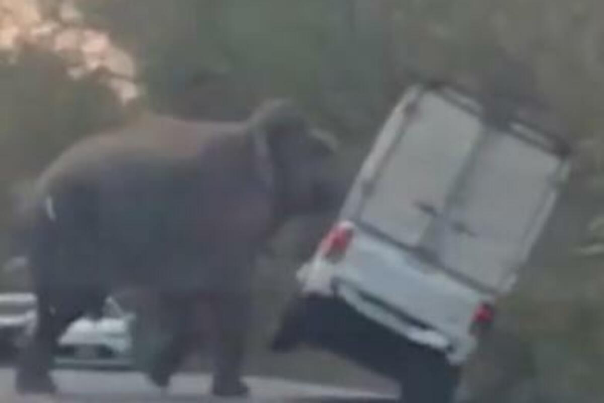 Nakon što je prevrnuo vozilo, slon je dalje nastavio svojim putem.