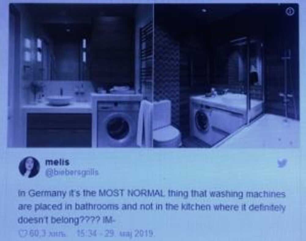 Jedna tviterašica objavila je fotografiju jednog nemačkog kupatila sa mašinom za veš u njoj i izazvala raspravu napisavši: