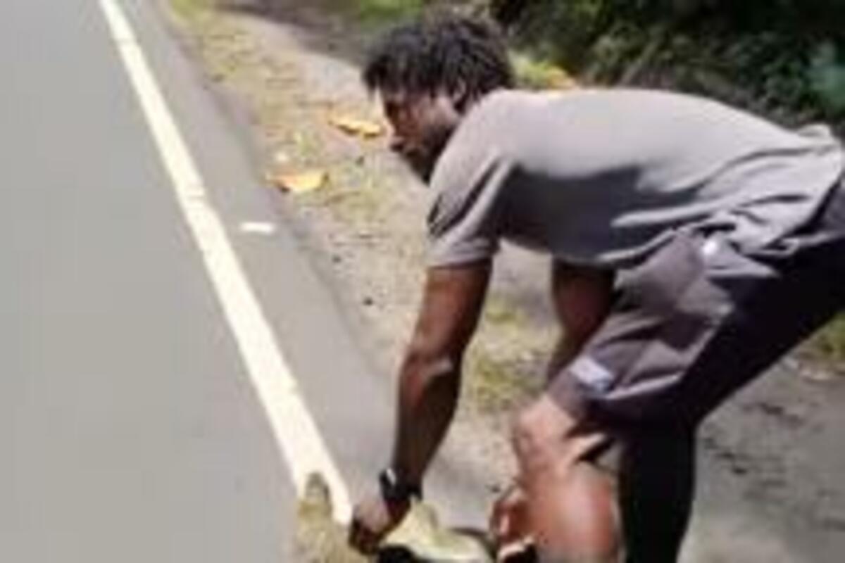 Međutim, u jednom trenutku je jedan čovek zastao pošto je ugledao nemoćnu životinju, a zatim joj prišao bez straha i uzeo je u naručje, iako je poznato da lenjivci nisu preterano prijateljski nastrojeni. Pogotovo ne vole da se nose. Ovaj lenjivac je, međutim, kako se činilo, svesno pristao da bude prenet preko ulice.