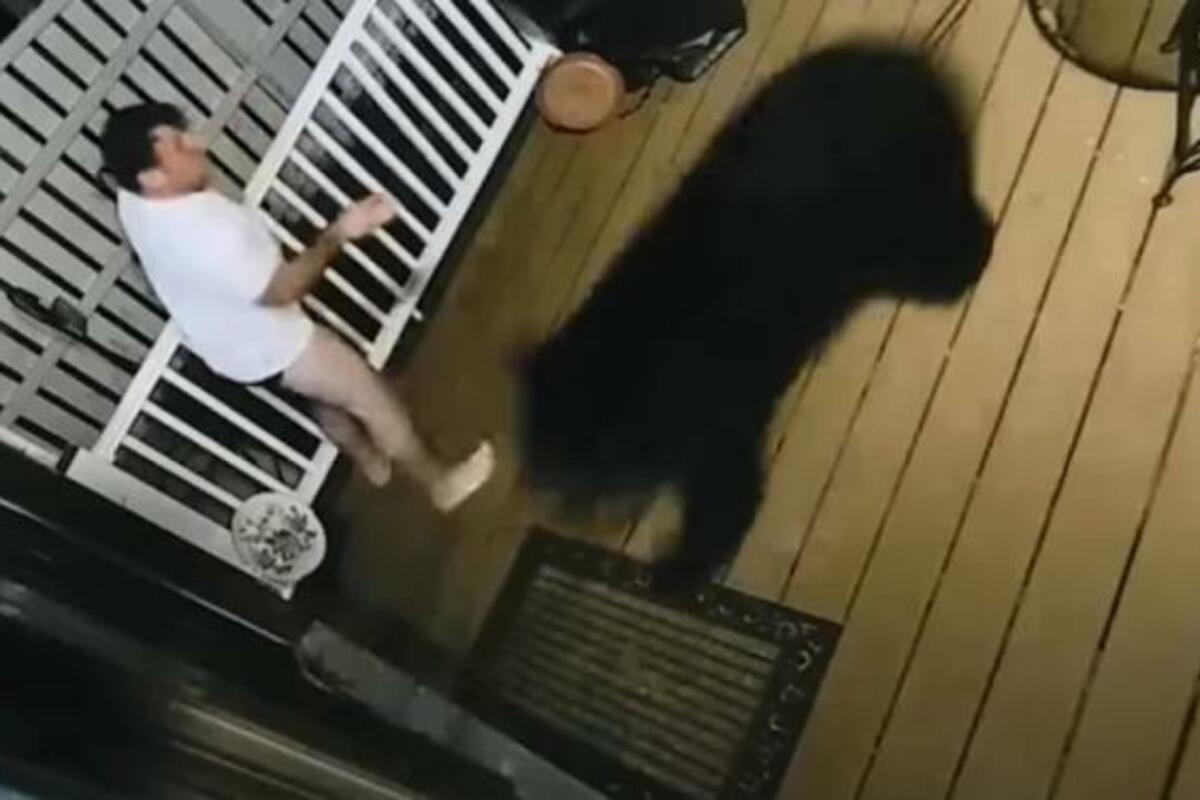 Džozef Damijani iz Nju Džerzija se vidno uplašio kada je hteo da vidi zašto mu psi laju, a onda mu je umalo u kuću upao medved.