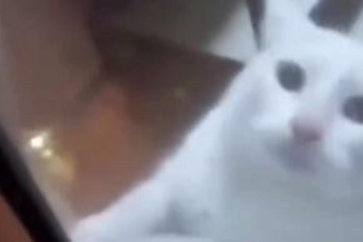 U snimku koji je postavljen na mreže vidi se uplašena mačka koja zapomaže iz sveg glasa i pokušava da pobegne iz prostorije kroz staklo na vratima