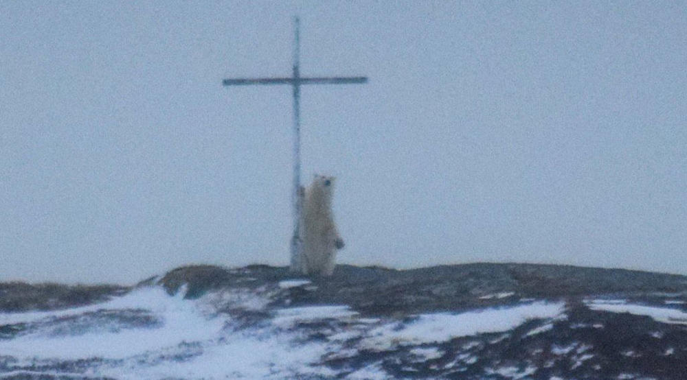 SLIKA KOJA JE ZAPREPASTILA SVET: Polarni medved ispred krsta na Arktiku (FOTO)
