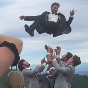 Svadbena torta je najavljena pompezno uz muziku i dve devojke su se izgleda trudile iz “petnih žila” da prenesu teret koji je predstavljala velika svadbena torta na više spratova. U trenutku kada je trebalo da je spuste na sto, devojkama se omaklo i ispustile su celu tortu koja je na zaprepašćenje svih gostiju pala na pod i raspala se.
