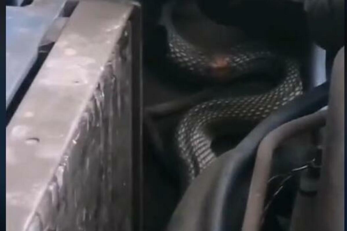 Apsolutno nam je jasno da je ovo verovatno zmija Belouška, i da nije otrovna. One mogu zapravo da narastu do pristojne veličine, ali ovolika zmijurina ispod haube nas je doslovno naježila.